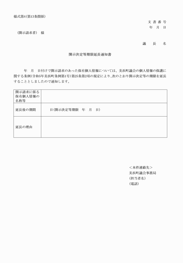 4 開示請求をした代理人は、当該開示請求に係る保有個人情報の開示を受ける前にその資格を喪失したときは、直ちに、書面でその旨を議長に届け出なければならない。