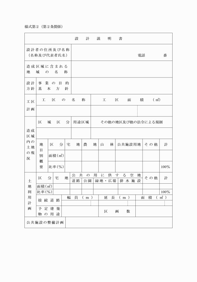 第2条 法第28条の4第3項第7号イ又は第63条第3項第7号イの規定に基づく認定(以下「優良宅地認定」という。)を受けようとする者は、宅地の造成工事が完了した後に優良宅地認定申請書(様式第1)を町長に提出しなければならない。